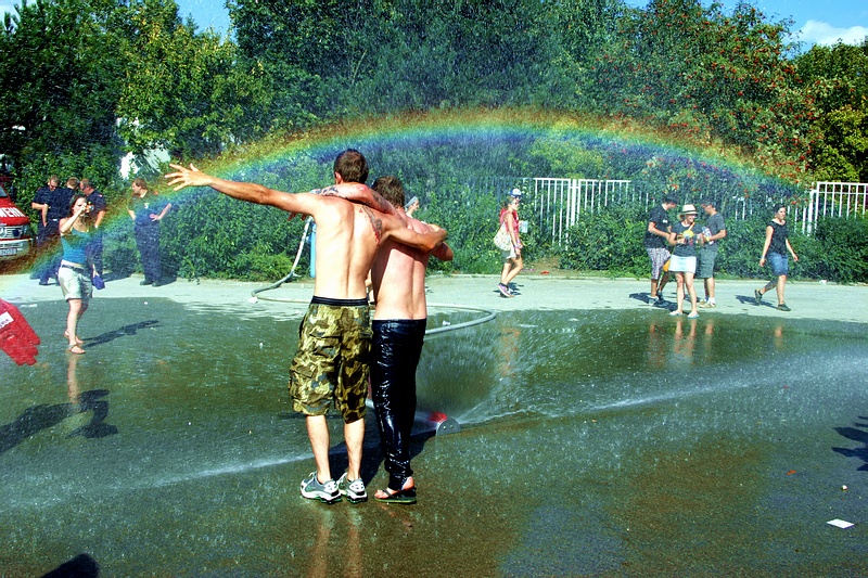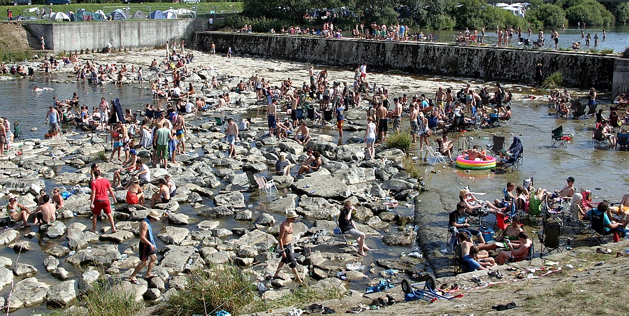 Die besten Plätze am Wasser werden gesichert, ein bisschen planschen, seine erste Palette Bier vernichten und das Festivalkostüm überstülpen (am besten so ausgefallen wie geht), seine Zeltnachbarn begaffen oder einfach nur den Affen rauslassen. Die Partystadt wächst, wer am nächsten Tag kommt, hat quasi schon so gut wie verloren.